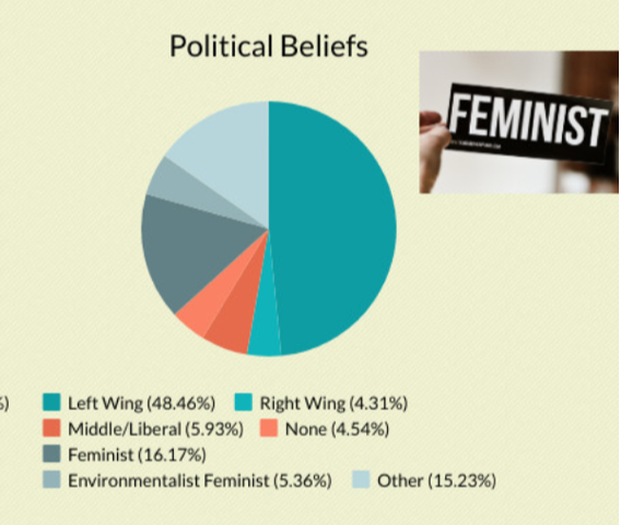 Anyway, let’s turn to the substance of the pages. The first obvious point is that they do not report results from a balanced survey: the infographics page entitled ‘Survey Demographics’ shows that 71 per cent of respondents were (i.e., presumably, self-identified as) women, 48 per cent were left wing, and 64 per cent were middle class: